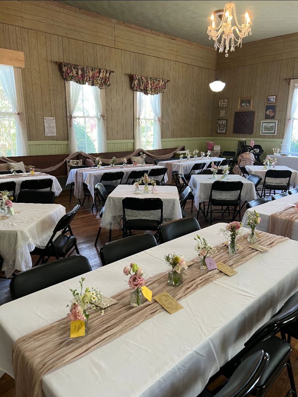The Clubhouse is a large, open room with hardwood floors and high ceilings. It seats 60 comfortably, with a max capacity of 80. Tables and chairs are included. There is one restroom (not handicap accessible).